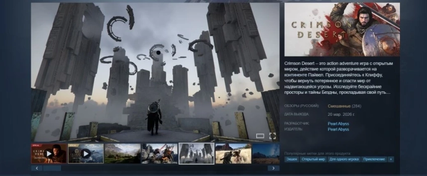 Напомним, что журналисты разделились в оценках Crimson Desert из-за сюжета и квестов. У игроков новинка тоже пока вызывает неоднозначные чувства. В Steam на экшен написано уже более 4 тыс. обзоров, но рекомендуют его только 60%. Как результат, у Crimson Desert сформировался «смешанный» пользовательский рейтинг.