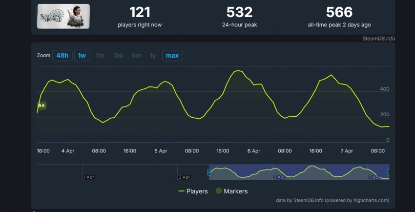 Полноценный релиз South of Midnight состоится 8 апреля, причём игра является частью библиотеки Game Pass. Критики встретили новинку довольно прохладно, однако в Steam у неё очень положительные отзывы на основе обзоров игроков премиального издания. Пиковый онлайн в Steam составил 566 человек.