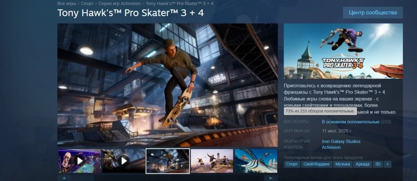 Сборник Tony Hawkʼs Pro Skater 3+4 уже доступен — приём в Steam «в основном положительный»