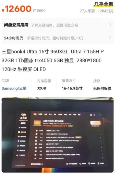 Продавец предлагает Galaxy Book 4 Ultra с модельным номером 960XG за 12 600 юаней ($1780). В составе ноутбука имеется процессор Core Ultra 7 155H из серии Meteor Lake, 32 Гбайт оперативной памяти LPDDR5-7467, твердотельный накопитель объёмом 1 Тбайт, а также дискретная видеокарта GeForce RTX 4050 с 6 Гбайт памяти GDDR6. Также указывается, что ноутбук оснащён OLED-экраном с разрешением 2880 × 1800 пикселей и частотой обновления 120 Гц.
