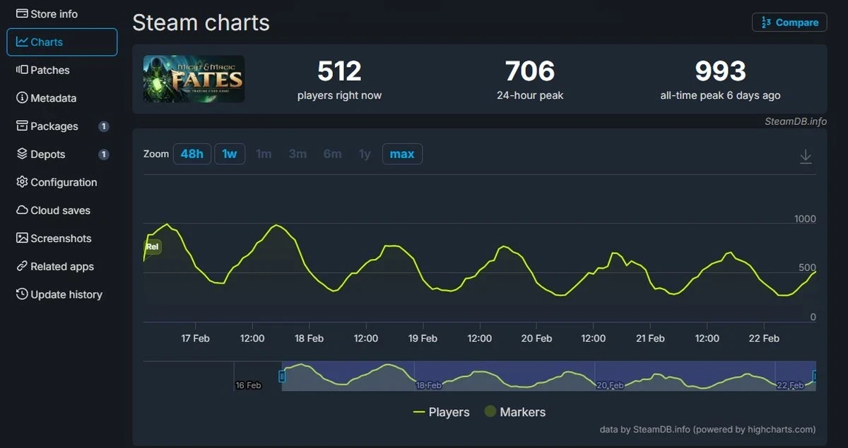 Пиковый онлайн Might & Magic Fates — Heroes TCG в Steam так и не дотянул до 1000 игроков
